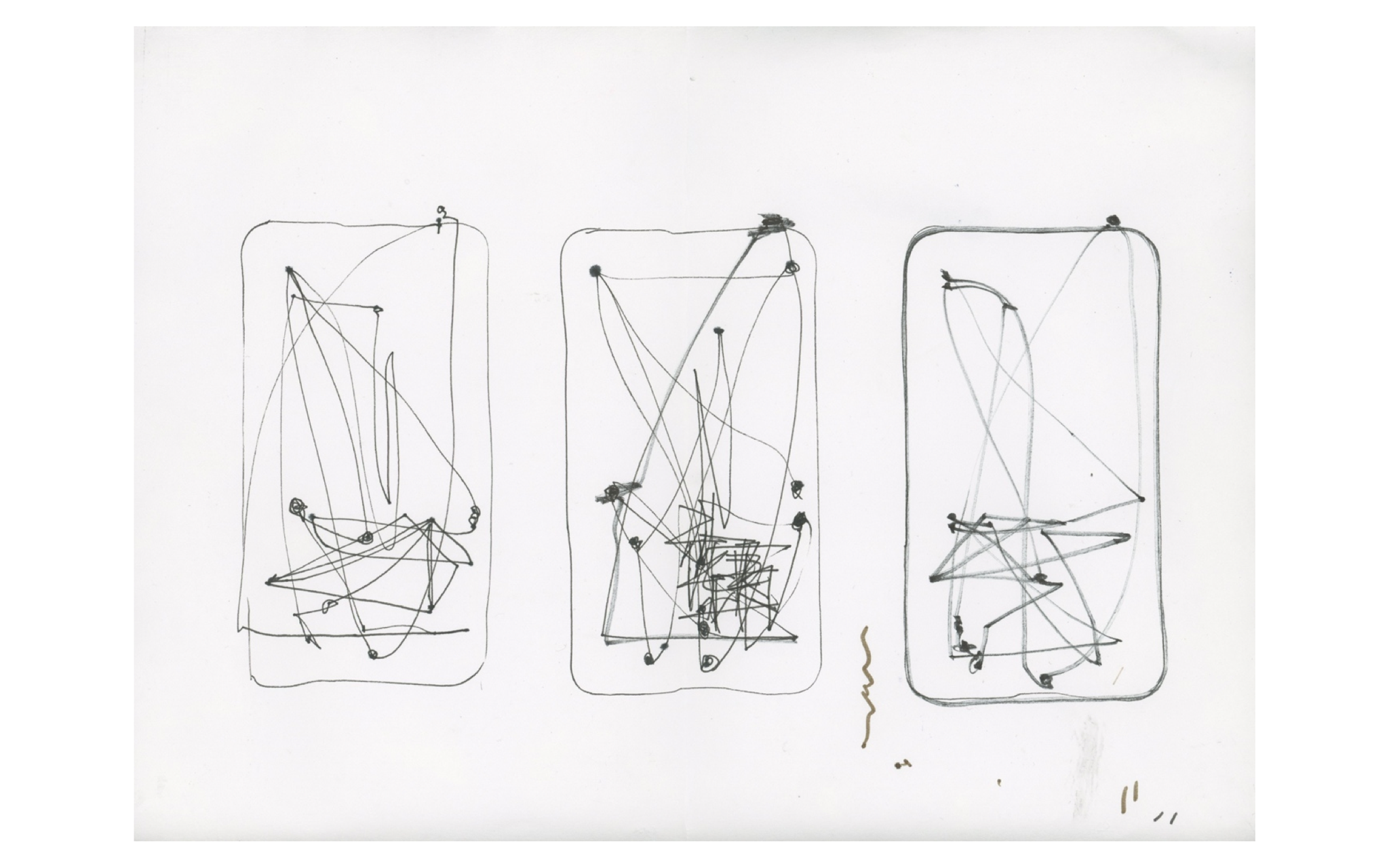 I think of my art works as various ways of translating and transforming people's behavior and gesture into trace of movement. Also, I am interested in the relationship between language and non-language communication and I want to explore how people communicate in different ways in daily life. I started my project from the attempt of tracing how people navigate through their digital devices, such as iPhone and laptop, and how people use the social network and check their email everyday. Following that, I tried to trace the movement of lips as lip-reading and hand gesture while talking, and I attempt to connect language and non-language communication in that process.
